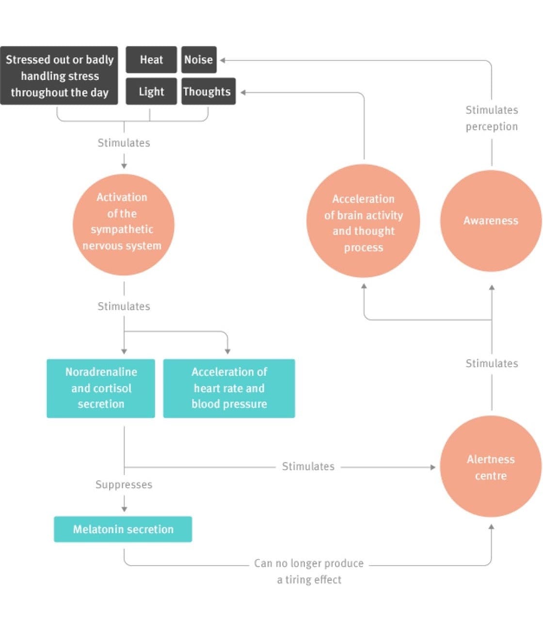 Diverse ricerche hanno messo in evidenza una correlazione tra l'attivazione del sistema nervoso simpatico e le difficoltà di addormentamento.